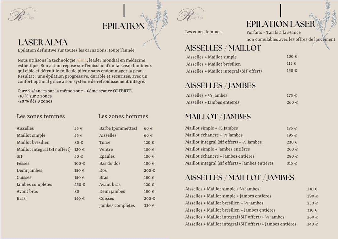 Tarifs Epilation LASER